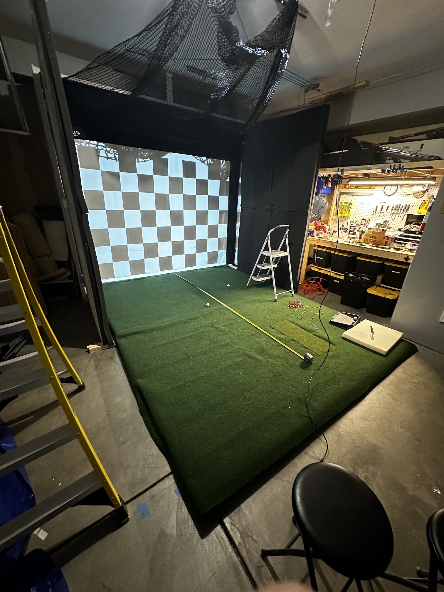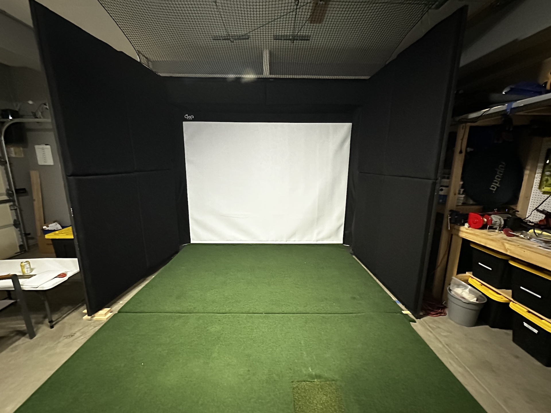 I’m now in my 3rd year of golf sim-ing in my garage. The first year I purchased my Garmin R10 and a cheap golf net off Amazon. Eventually I added a cheap projector and a $20 Walmart projector screen that I zip tied to the net. While this worked pretty well, it wasn’t very secure or pretty. It also allowed bad shanks to fly around the garage.
